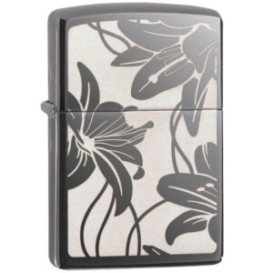ENCENDEDOR ZIPPO NEGRO ICE CON FLORES